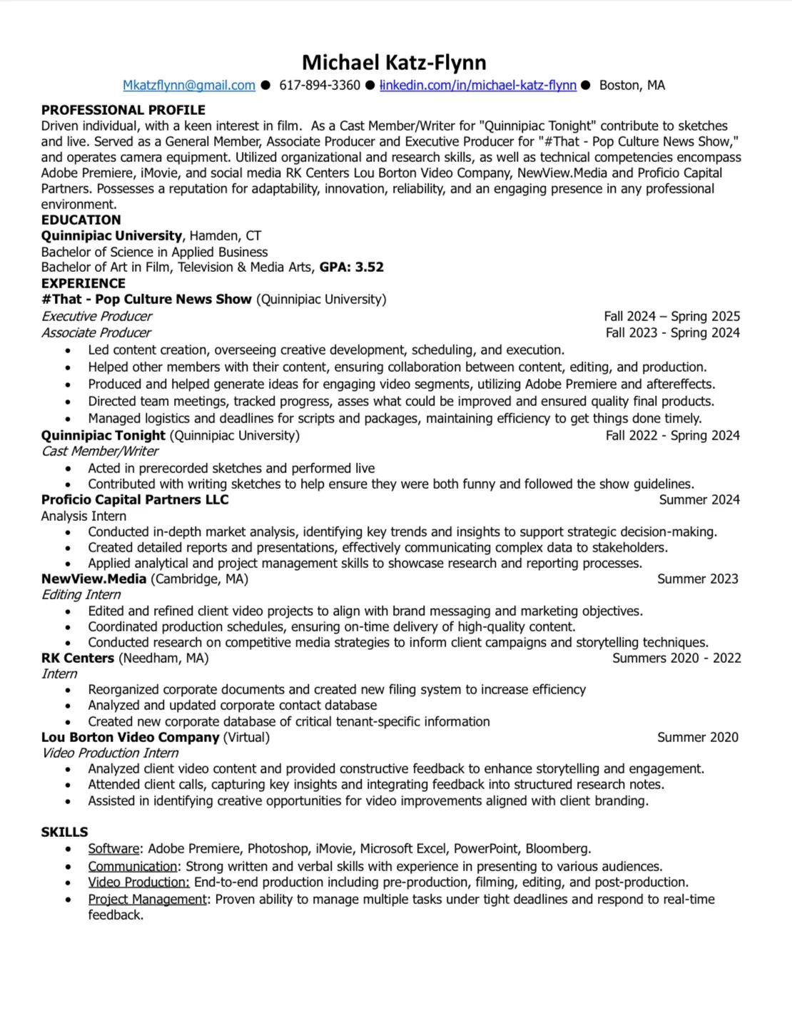 Number: (617) 894-3360 Linkedin: www.linkedin.com/in/michael-katz-flynn Instagram: @_mike.kf_2k